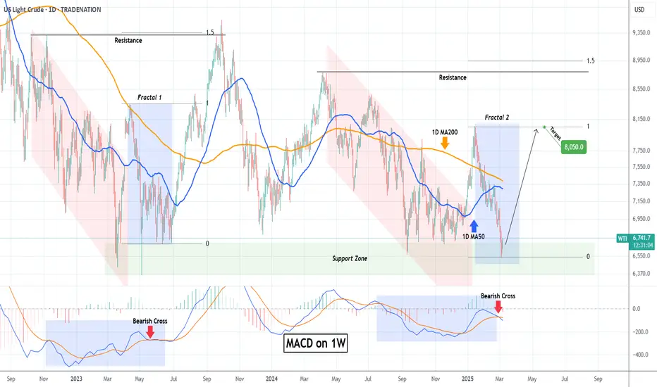 The long-term dynamics should gradually start emerging now and the principle parameter is that every time this Support Zone gets hit, WTI starts strong medium-term rallies.