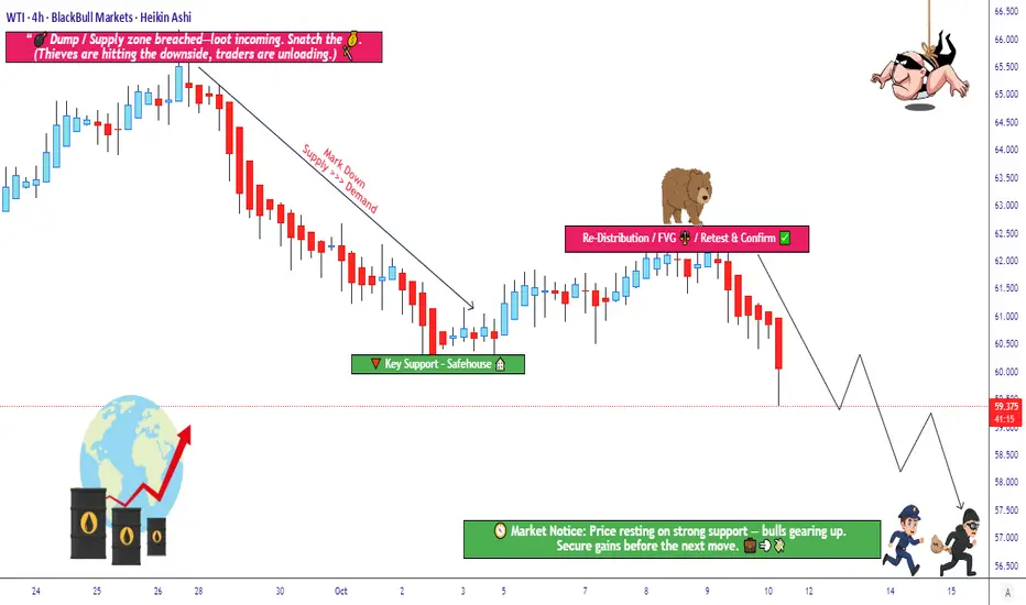 🛢️ XTI/USD “WTI” – Bearish Redistribution Zone Incoming (Thief Strategy Inside)