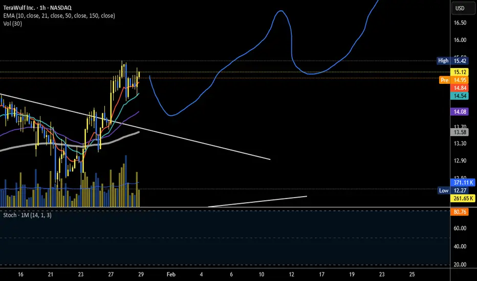 TeraWulf Inc. I am looking for an entry today. triangle has being breached, which looks like W4. upside potential 20.00+