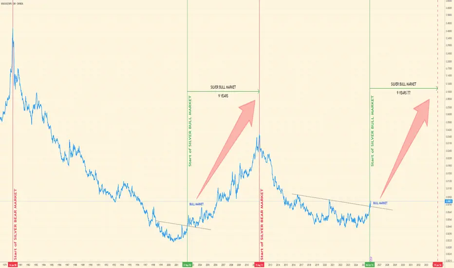 In the last cycle, leading silver miners gained roughly 10x. Many miners already doubled from the 2022–2023 lows. If the pattern repeats, the current cycle (2025–2034?) could still deliver significant upside.