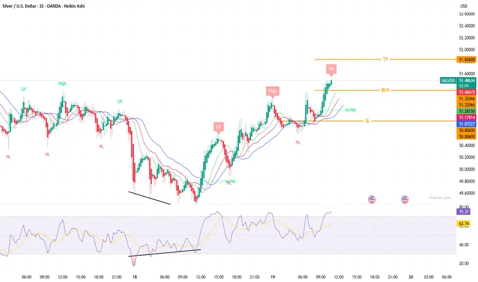 XAGUSD – Clean Break of Structure + RSI Divergence Reversal-15M
