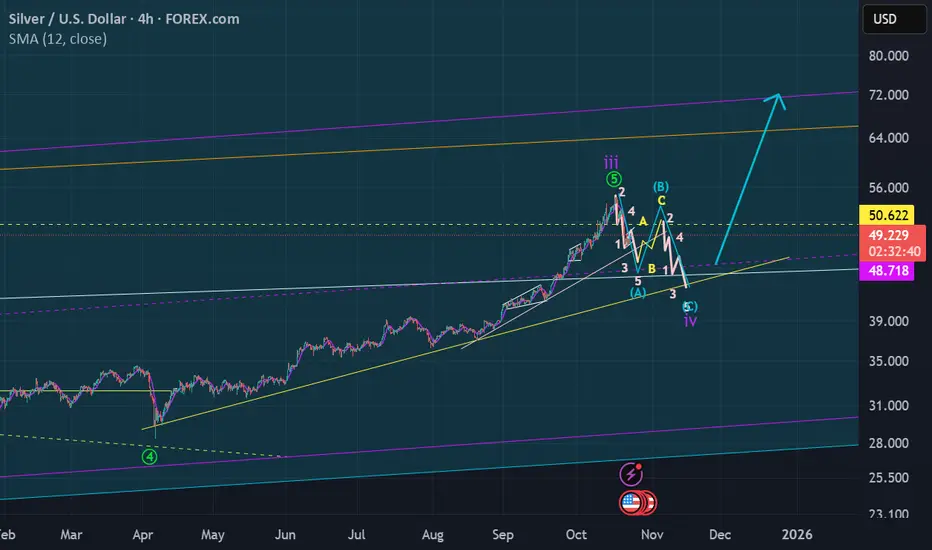 In my opinion (IMO), we may be seeing the start of a longer and deeper correction...I could be off on this, however the bounce we are seeing at the moment is weekand looks corrective...this tells me we will likely see another major 5 wave move down...so either we see a 5-3-5 wave sequence or a 3-3-5 wave sequence...either way...I see us going back down to $38-$40 range in what will likely take a month or two to complete. I know this is not what we want to hear as silver bulls...but in the near to medium term I am bearish.