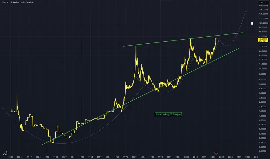 Interesting chart showing repeating cups, each one progressively becoming tighter and tighter within this large ascending triangle on this Monthly chart.