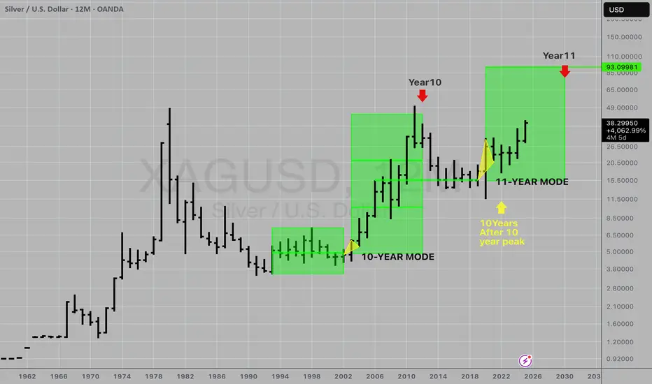 2020 again saw a range expansion out of the mode and triggered a new 11-year uptrend which is labeled now ending in 2030.