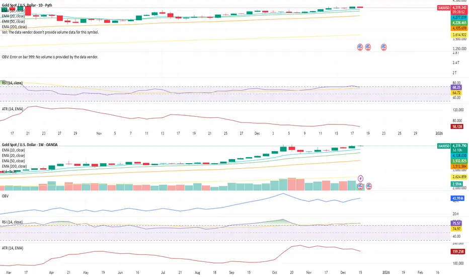 Due to the nature of spot gold volume, OBV on the daily timeframe is less informative, and participation signals are better assessed from the higher-timeframe structure.