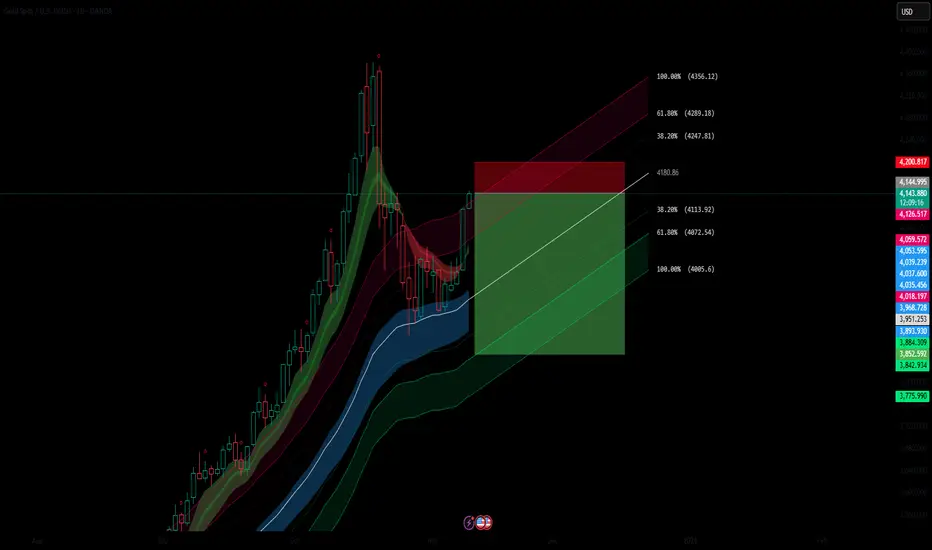 Gold (XAU/USD) recently hit resistance near 4180–4200, a zone aligned with previous structural highs and a key Fib retracement zone (38.2%) from the recent swing top. The price has lost bullish momentum after a sharp rally, showing rejection wicks and fading volume. The multi-color ribbon EMA suggests early signs of a bearish crossover — indicating potential for a deeper correction.