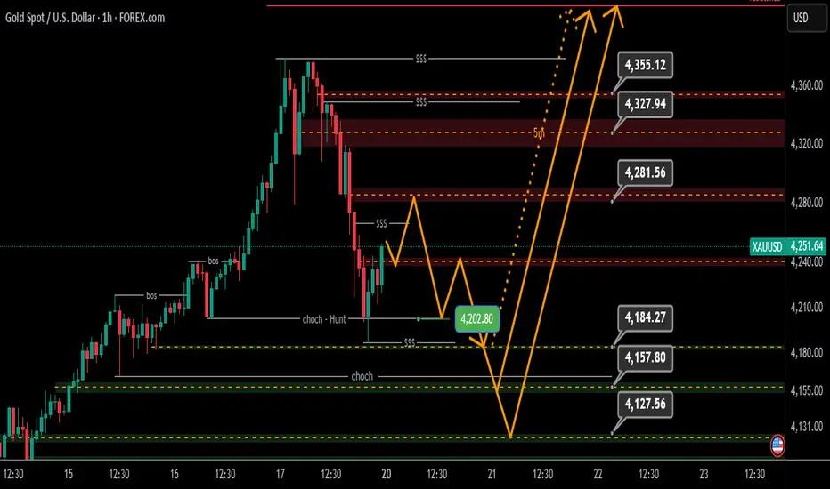 The area of 4202 is the choch-hunt line that can act as a support pullback and even the main positive reaction can be formed from this area, but ideally the current bottom is collected once again and rises from one of the three supports below the bottom.