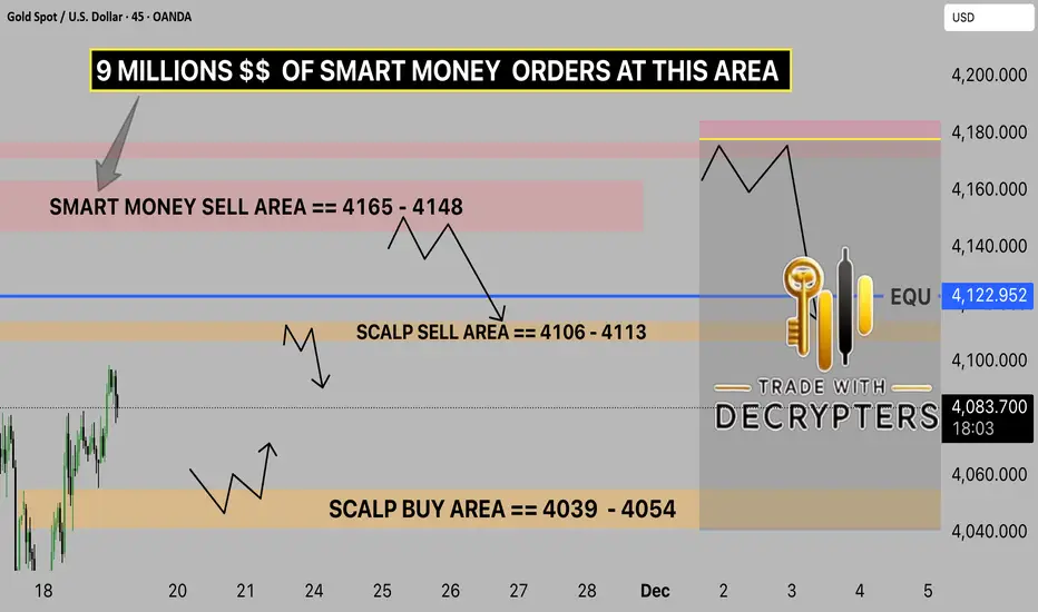 🚨 📌 SMART MONEY SELL AREA: 4165 – 4148