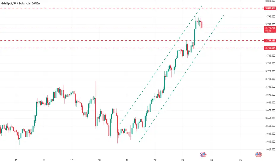 Gold is currently standing firmly above the 3750 line, with a maximum impact of 3791, just one step away from the 3800 mark. The overall bullish momentum has not weakened. If gold can continue to stabilize above 3750, it means that the 3800 mark will most likely be tested. The short-term market is still in a strong bullish pattern. We are currently focusing on the 3760-3750 support zone. If this area can effectively stabilize, it will be an ideal entry point for short-term bulls and has a strong reference value. From the 4-hour cycle, the effective support below is maintained in the area around 3760-3750, while the upper pressure is at the 3800 mark, which is the key balance point between a strong breakthrough and a technical pullback. In terms of operating strategy, it is still recommended to maintain the idea of "low-long as the main and high-short as the auxiliary". Specifically, if the price falls back to 3750-3760 without breaking through, you can go long with a light position, and target around 3800 first; if the price touches the 3800 area, you can try to go short with a light position, but you must enter and exit quickly and strictly control the stop loss; in the middle position, you should wait and see, watch more and do less, to avoid repeated consumption of funds by range fluctuations. Overall, the current bullish trend of gold still dominates the market, but as the price gradually approaches the integer mark, market volatility may intensify. Short-term operations must be steady and cautious, control the rhythm, wait for key points to enter the market, and respond flexibly. This is the core idea at the current stage.