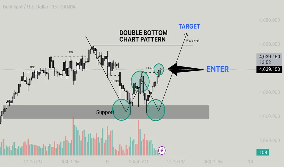 Entry Point: Marked at 4,037.260 after confirmation of CHoCH and bullish candle close above neckline.