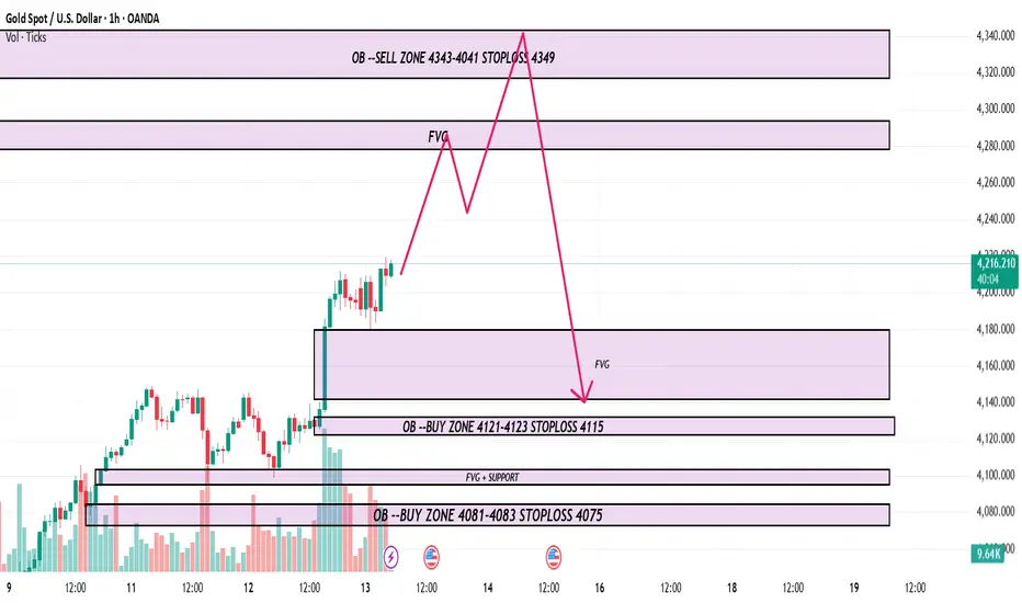 Today’s plan: Bias leans bullish conditionally, with multiple buy zones at 4,121–4,123, 4,081–4,083, and 3,990–3,988 offering structured opportunities. However, a strong sell trigger remains valid at the supply zone 4,343–4,041, if rejection occurs. Trade should be guided by confirmation, strict risk control, and alignment with SMC structure.