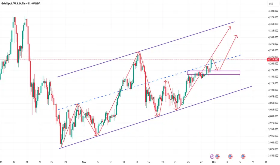 This week, the key resistance area for gold is around 4240-4250. If it can break through effectively, the price of gold is expected to further test the previous highs of 4300 and even 4380. On the downside, 4175-4160 has turned from resistance into the first strong support, and the more critical support is at the 4150 level, a trading zone between bulls and bears. From the 4-hour chart, the main support for the price is at 4200. As long as the market maintains its strong upward momentum, it will not retrace too deeply. Therefore, it is necessary to pay attention to the short-term bullish trend. On the hourly chart, the price rose from 4155, and after a retracement from 4170-4180, it rose to 4226. The bullish trend support is at 4155. As long as the price does not break 4155, it will continue to rise and move towards the 4240-4250 area. In summary, the recommended strategy for gold trading next Monday is to primarily buy on dips and secondarily sell on rallies. The key resistance level to watch in the short term is 4240-4250, while the key support level is 4180-4160. Please keep up with the pace of the market.