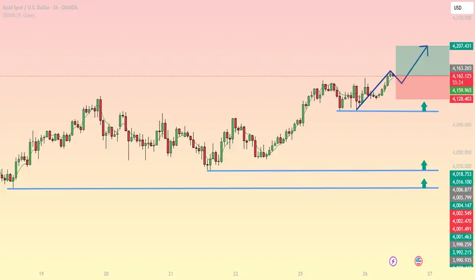 The intraday trend remains strongly bullish, with expectations for an upside continuation toward the 4200+ zone. Watch closely how price reacts around 4163–4167 to confirm the next leg up.