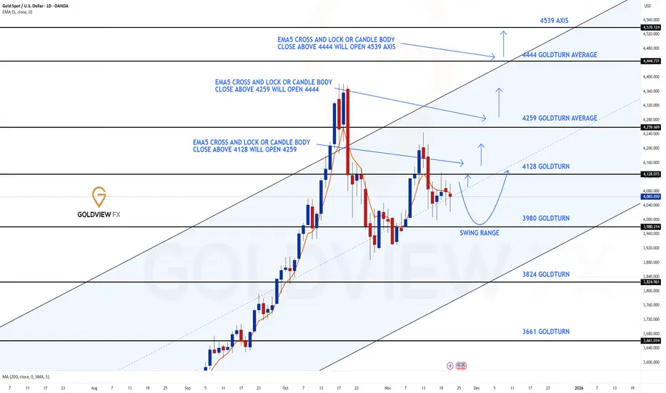 Price is currently playing between the longer daily chart range 4128 and 3980, with the channel half-line acting as support.