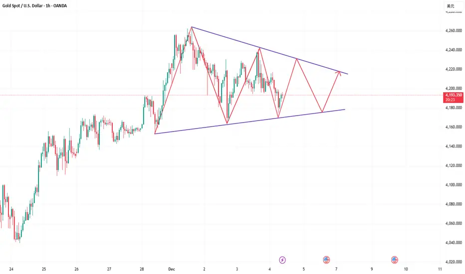 Gold rebounded yesterday, finding support around the 5-day moving average, but as expected, it encountered resistance near 4230 and retreated to around 4195. Influenced by the anticipated ADP non-farm payroll data, the price rebounded again to around 4241, but subsequently retreated back to around 4195. The daily chart ultimately closed with a bearish doji candlestick with an upper shadow. Reviewing yesterday's price action, although there was a rebound, it failed to break Tuesday's high, indicating market apprehension about Tuesday's bearish candlestick. Even the positive ADP data only pushed the high to around 4241, suggesting a weakening of bullish momentum. A technical correction is possible in the short term. Based on the daily chart structure, the key support level to watch today is the 10-day moving average around 4170, while the resistance level to watch remains around 4230-4240. Based on the hourly chart, gold may trade sideways today. There is short-term trendline resistance above, which coincides with the upper limit of the range around 4230-4240. Therefore, the 4230-4240 area can be considered a key resistance level today. On the downside, pay attention to the short-term support area around 4180-4170. If the intraday structure shifts downward, there is still a possibility of going back to around 4150.