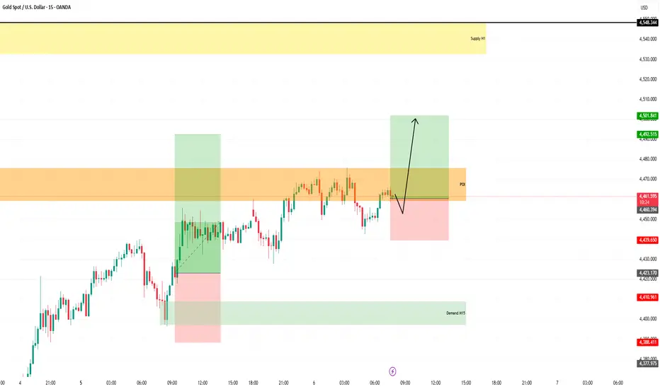 Price is reacting around a strong POI zone (≈ 4460 area)