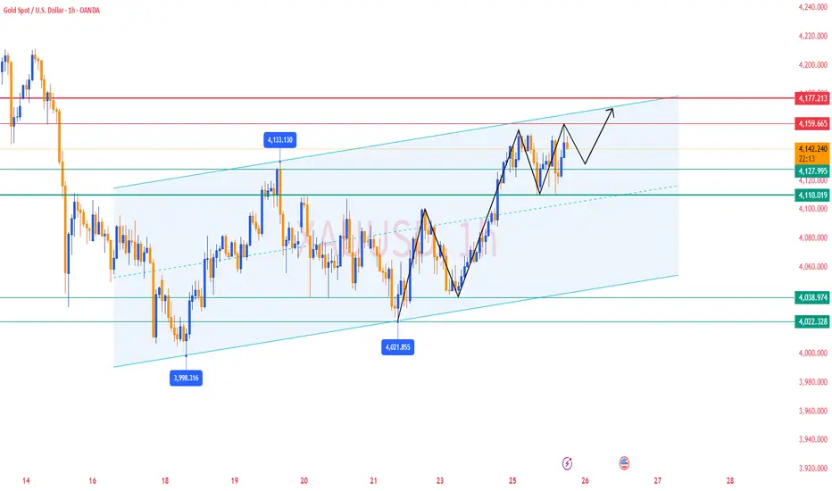 The H1 moving-average system provides clear support. As long as 4115 holds, the bullish trend can continue.