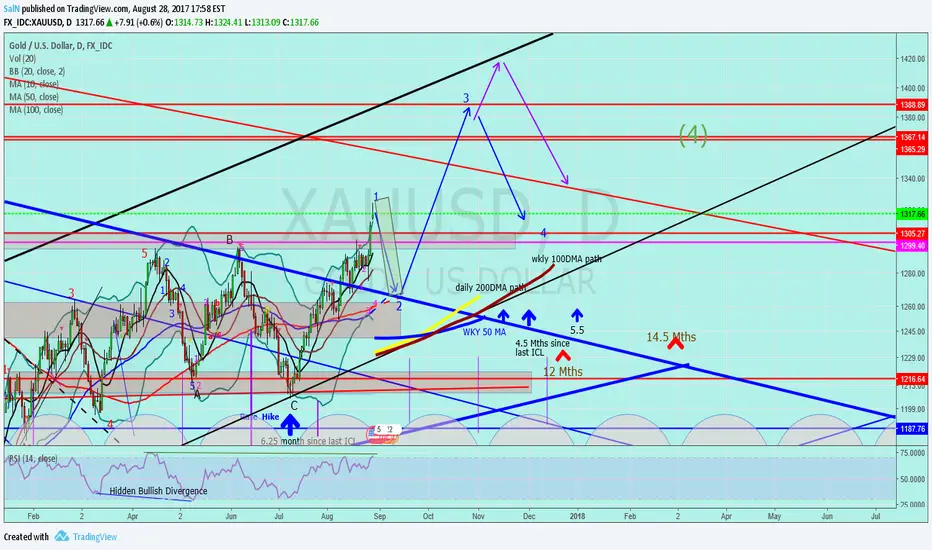 Today was a big deal to me. North Korea just fired a missile over Japan causing gold to spike and that is good enough for me for this breakout. So the question for those that are in JDST or Dust is how to get out. We will have a daily cycle low very soon. I expect gold to drop back down to the 1270ish area and retest that long term trend line for the end of the daily cycle. I am still estimating that to occur around September 5th or maybe a little bit after that. At that point, wherever you are , you should sell your short and buy Jnug. So even though you are down right now, we can still recover much of these losses. This breakout and next bullish push up should propel Jnug up very quickly. You will make up those losses very quickly and then some. If this is in fact the bull market for gold, then understand that there are at least 3 -4 more years of climbing to do with gold. And Jnug will climb much faster and higher than gold. Towards then end of this bull cycle, Jnug will push up much faster than it did in the 2016 run. So we will have to lick our wounds a bit and buy the dip.