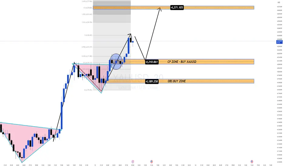 The key now is how price reacts around the CP Zone at 4,210 and the OBS Zone at 4,189.