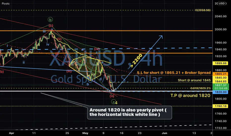 Gold have completed its “hidden” “contracting triangle pattern” as yellow highlighted Zone one wave (iv)(Red).. “The final destination “ for the gold pullback probably would be around 1820 which is also yearly pivot ( a yearly major polarity/territory for bull/bear battle field..