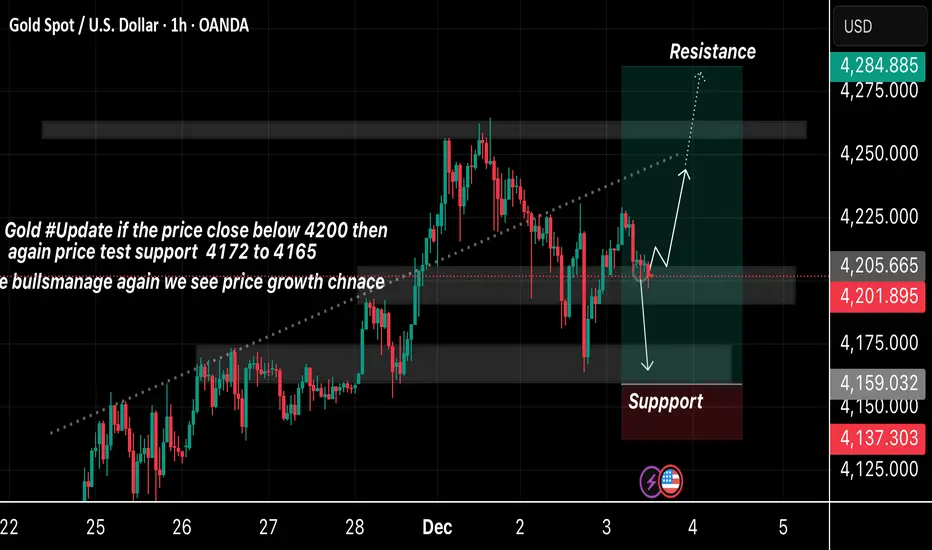 ✅ If the price closes below 4200, it may fall toward the support area between 4172 and 4165.
