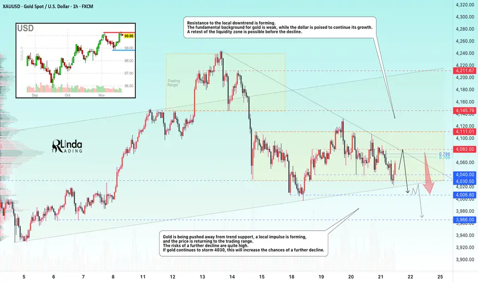 In the medium term, gold currently looks weak. The reaction to support is weakening, a cascade of levels and a downward resistance line are forming. The market may test the 4080 area, but if the PMI is weak, gold will return to attack the trend support. However, a break above 4082 and a close above this zone could give us a chance for growth.