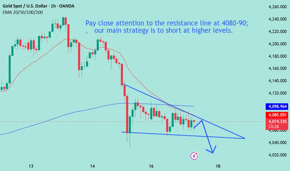 Recently, the strengthening dollar and waning expectations of interest rate cuts have put upward pressure on gold. Gold's rebound today was weak, forming a triangle pattern and fluctuating within the 4050-4090 range. I believe this market condition is favorable for trading because we have identified resistance and support lines, allowing us to sell on rallies and buy on dips. However, gold's rebound in the US session will likely continue to face pressure, and the market remains bearish. Therefore, any rebound in gold during the US session should be used as an opportunity to sell.