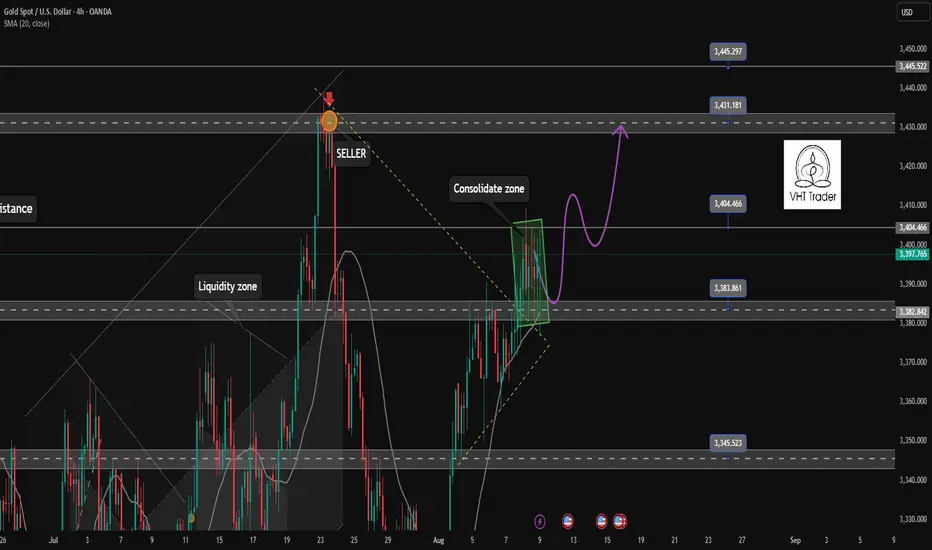 ✏️Last weekend with a trading day in the accumulation range. Early this week waiting for new momentum to break the accumulation range from 3385 and 3405 to trade on the winning side. When breaking the lower range, a corrective wave will be formed and then create increasing waves to ATH. If breaking the upper range of the accumulation model, buying force can completely push the gold price to approach ATH around 3445 soon.