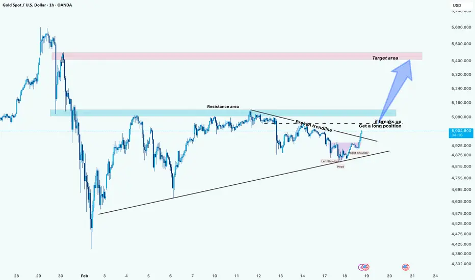If price breaks and holds above this area, it would confirm strength and open the path for continuation toward the pink target zone near 5,380 – 5,450.