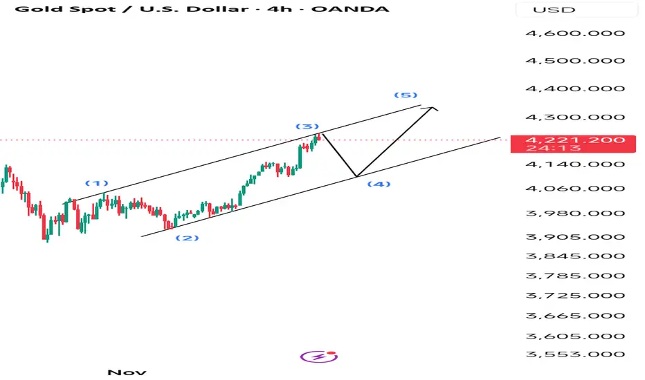 This setup suggests a short-term bearish retracement before the next impulsive Wave (5) rally continues toward higher targets around $4,350 – $4,400.