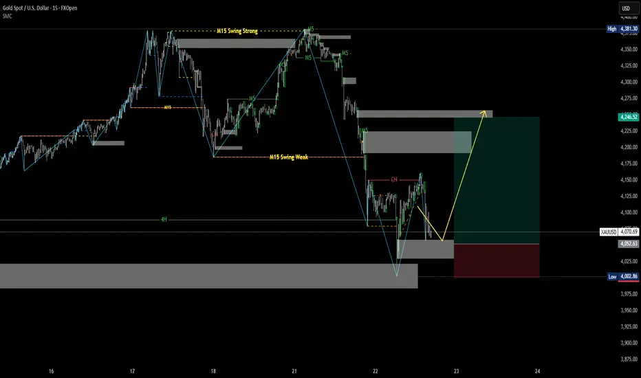 Structural analysis of XAUUSD on M5, M15 timeframes