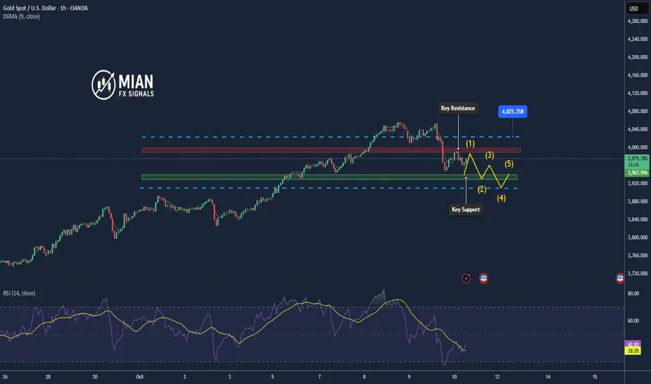 If gold fails to break above 4010, it may extend the decline toward 3915–3890 in the coming sessions.