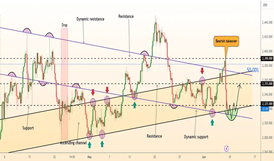 After reaching the 50% retracement level, the price formed a bearish takeover and descended into the channel.
