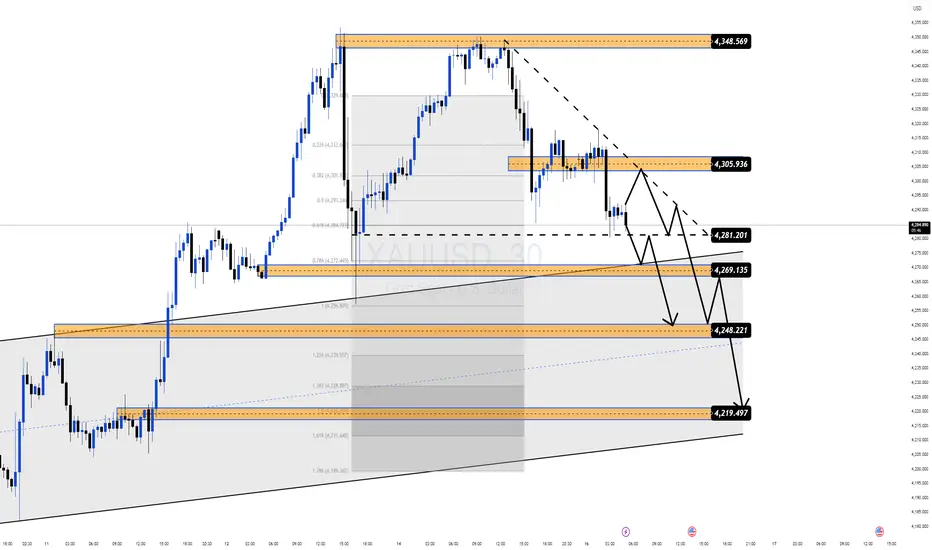 After a strong bullish impulse, Gold is now showing clear signs of exhaustion near the upper liquidity zone. Price failed to sustain above the recent high and has started to rotate lower, suggesting a distribution phase rather than continuation.