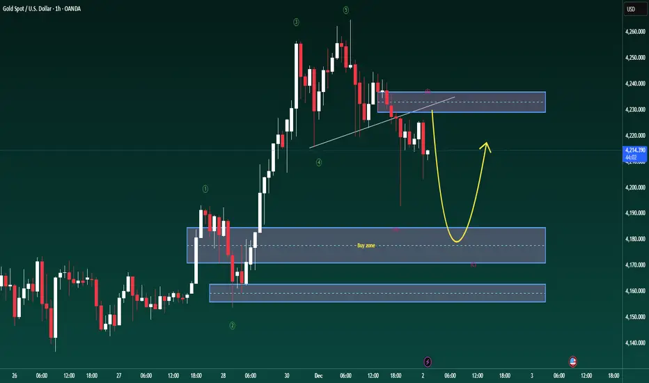 The price area above 4,227–4,238 is a zone with selling liquidity + retesting the structure after breaking the H1 peak.