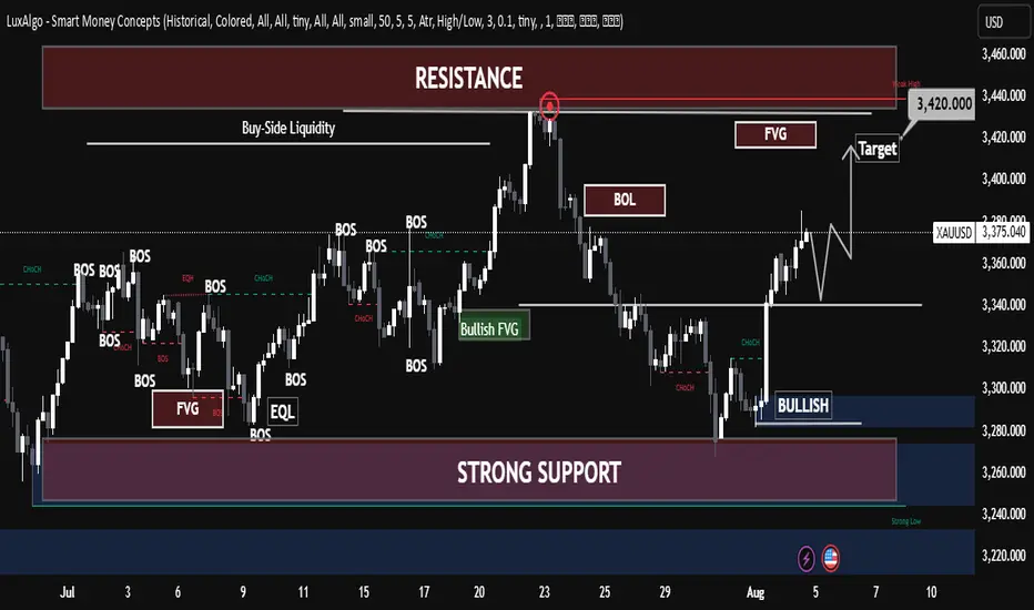 This setup suggests institutional buy-side pressure with targets on resting liquidity around $3,420. Smart Money is likely driving price toward that level to grab orders before the next big move.