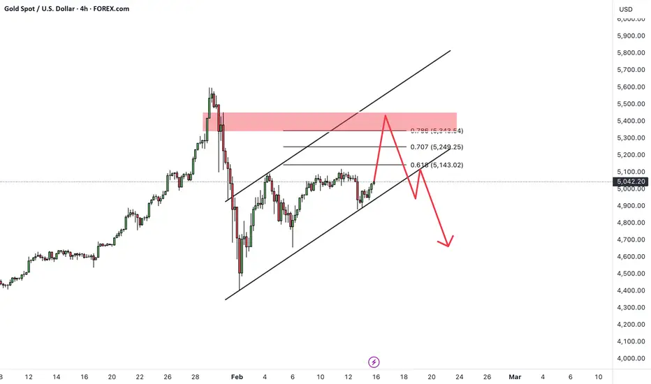 Gold is currently moving within a well-defined ascending channel. In the short term, price is expected to continue fluctuating inside this channel structure. A breakout above the channel and the previous swing high resistance appears unlikely at this stage, and price action is more likely to remain choppy and range-bound.