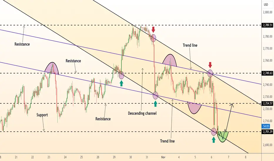 GOLD is in a descending channel below the trend lines.