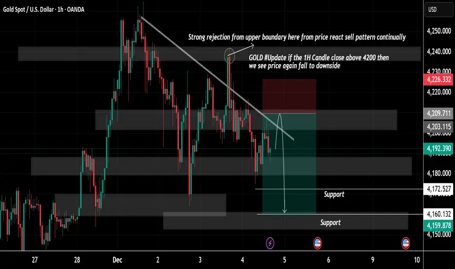 Price is currently trading just below this trendline chart indicates that unless the 1H candle closes above the 4200 zone, the market is likely to resume its downward movement this suggests a bearish structure remains intact as long as price stays under the 4200 resistance level.