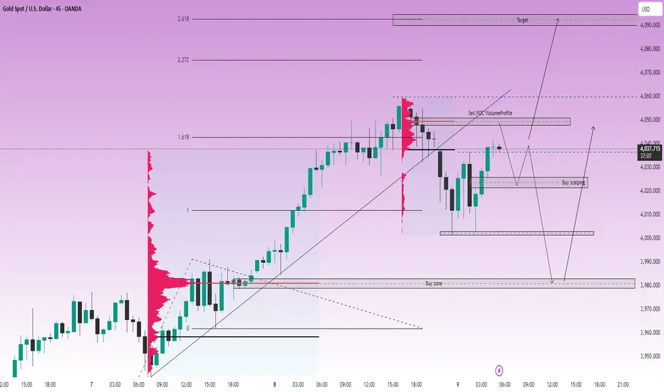 The upward target according to Fibonacci Extension is currently in the 4090 zone, corresponding to the 2.618 extension level — likely to become a major profit-taking area for buyers.