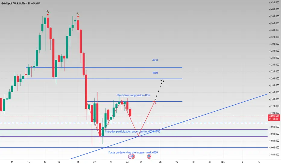 But from the 4H perspective, if the short-term decline continues and it can effectively rebound after touching the trend line and move out of the W-shaped structure, then gold will be expected to hit the 4135-4145 pressure again, and then gradually hit the 4160, 4200 and other periodic resistance levels until the bulls return. As time goes by, the support points on the short-term trend line are constantly moving up. If it falls back to 4050-4035, try to go long on gold in batches with light positions, and the target is 4090-4130.