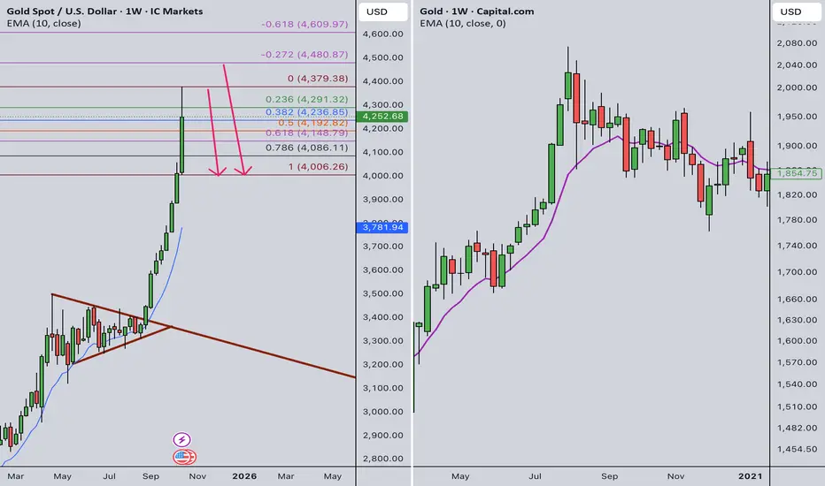 Gold has been rising for the last 9 weeks including the past week. There is no sign of slowing down from technical point of view. The last time it has 9 continuous bullish run weeks was back to 2020 when Covid just started. And the price was topped then. Could the history repeat itself? Probably.