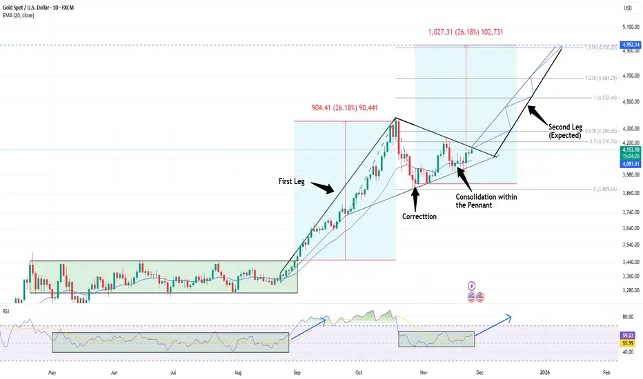 Gold Analysis – A Classic Bullish Continuation Structure Forming