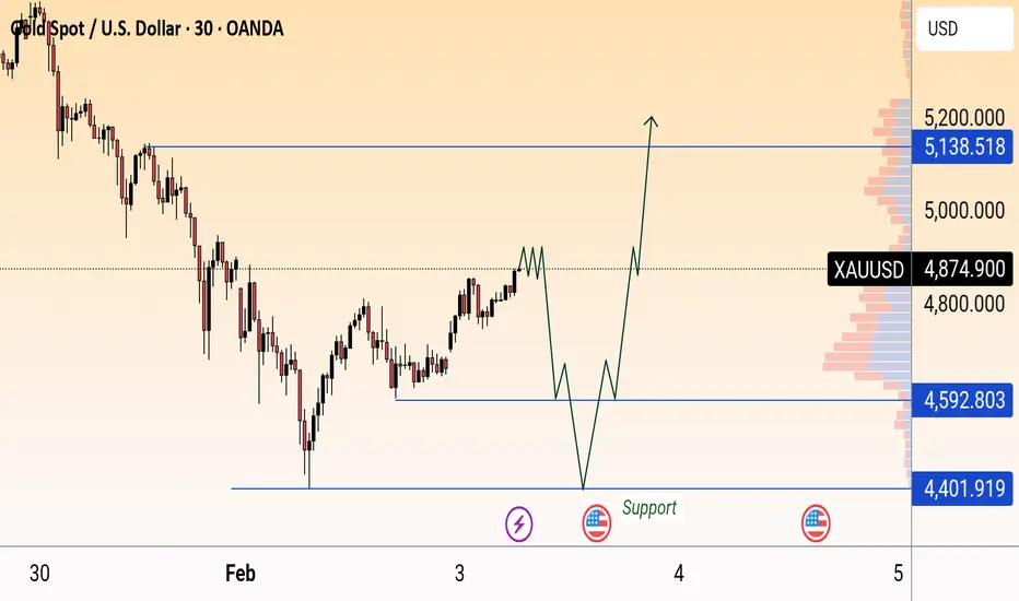 If price respects the support area, we may see a strong push toward the 4,880–5,140 resistance zone. A clean break and hold above current highs will confirm further upside momentum. However, a breakdown below support could open the door for a deeper retracement toward 4,400.