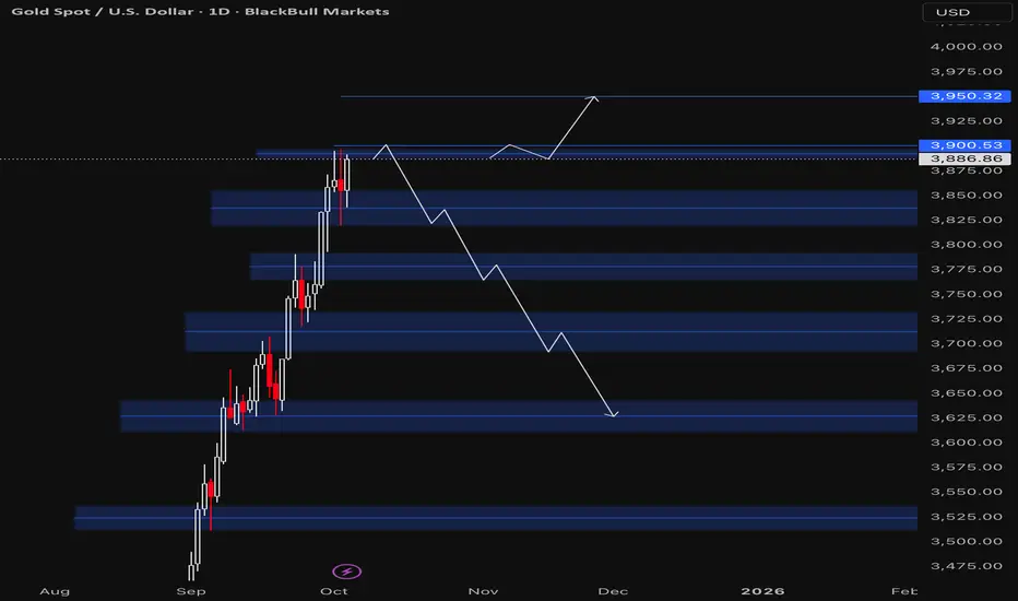 Gold has rallied up to 4600 plus pips since September. Now this area is extremely important, price has approached this area and got rejected multiple times. If bulls managed to break 3900 than expect gold to rally up to 3950.
