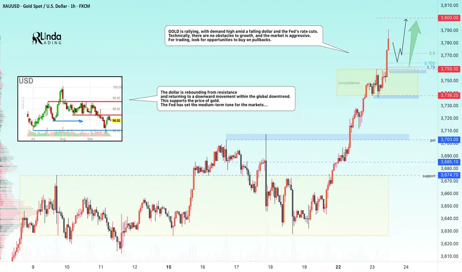 Many factors are supporting the rise in gold, and there are no compelling reasons to sell gold now. The ideal trading strategy is to wait for a pullback and retest of support levels with the formation of strong reversal points for buying.