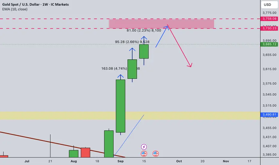 As such, next week should be critical for bears. I am expecting price to rise to 3730-3758 zone first and drop from there.