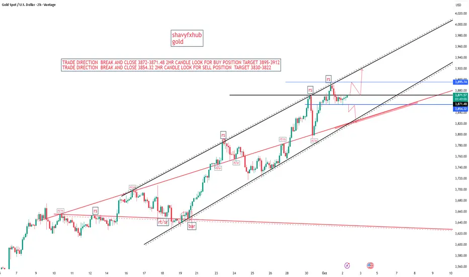 we broke a major support 3871.69-3872 ,this broken structure is our current supply roof and am seeing a bearish drop into 3830 but seller will have to break and close on 2hr 3854.4.... if we reclaim 3871.69-3872 then we go long target will be 3911 and 3917.