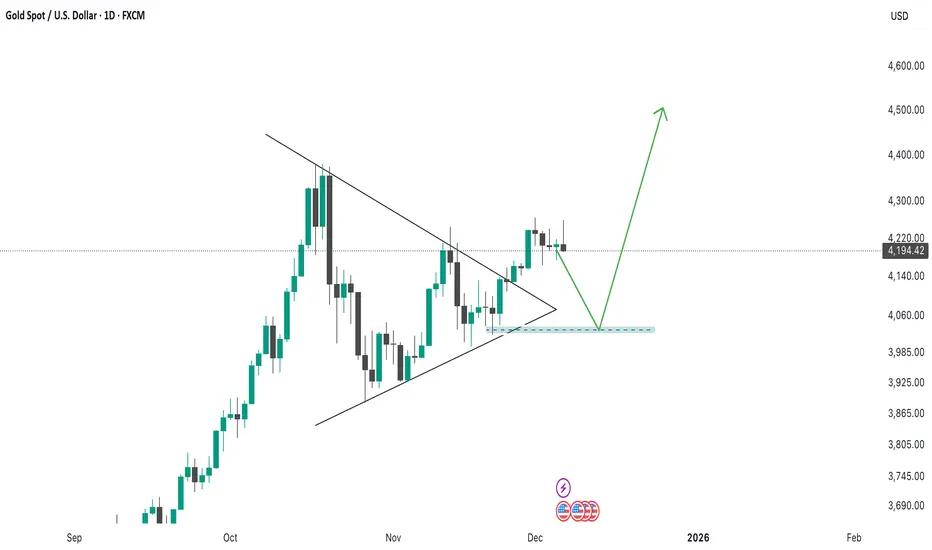 As you can see gold has already breakout in daily time frame so it is the time to retest. In a weekly time frame market already made a CRT setup for which 50% target is 4131-4135 and final target for CRT is 4040 so if we consider CRT will be played till 50% then this is also a good demand zone to throw market upwards a lot and if we think 100% then final demand zone is also a good zone so play accordingly.In december market will be sideways as it will expand in Q1 of 2026. For now 4252-4262 is strong resistance to break for 8 dec till 50% CRT so you can look for short with sl 4272 and target can be 4131-4133.
