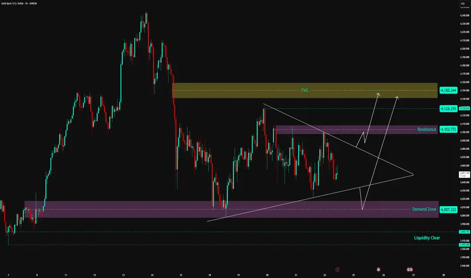 • 🟣 Resistance Zone: 4,103 – 4,110 USD → decisive area for direction